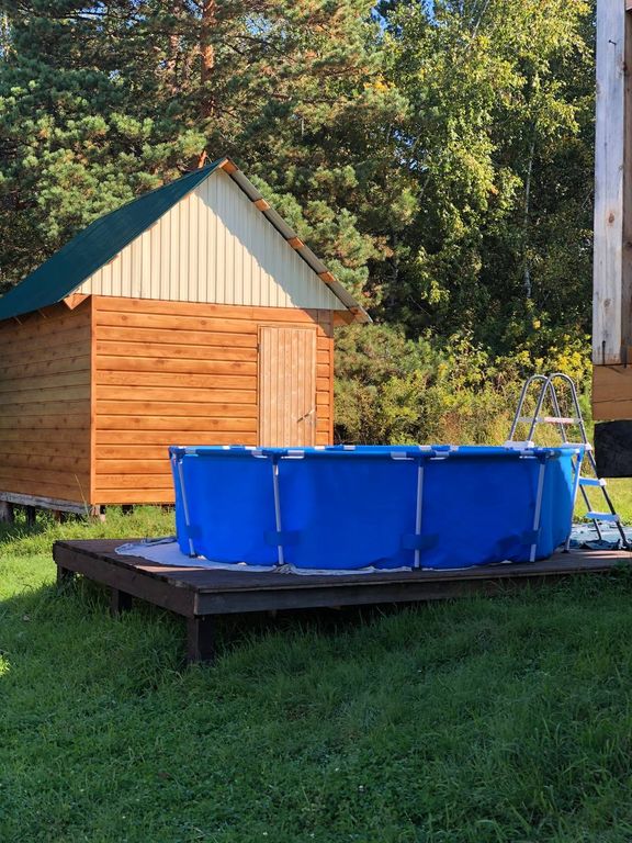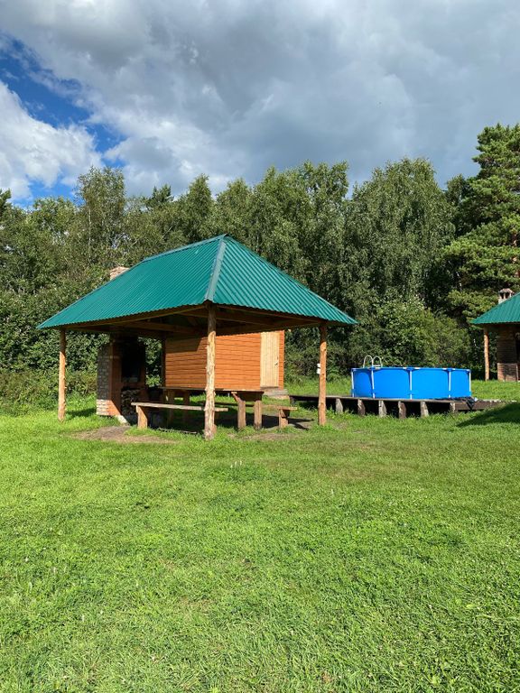 Рядом с домиком крытая беседка с мангалом, стол с лавками. Около дома баня с парной и душем, каркасный бассейн диаметром 3м, высотой 0,7м.